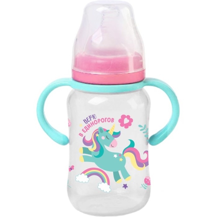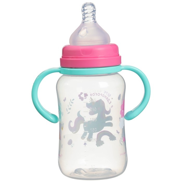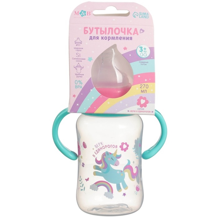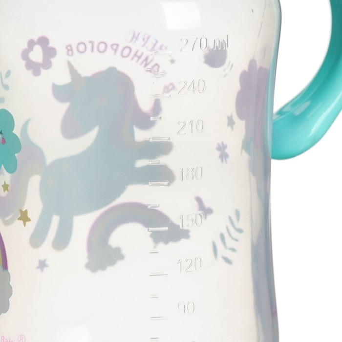 Бутылочка для кормления, широкое горло, средний поток от 3 мес., 270 мл., «Единорог», M&B