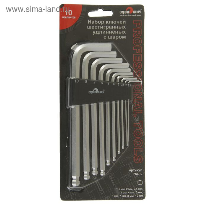 Набор шестигранников "СЕРВИС КЛЮЧ", Proffi, 10 пр., удлиненные, с шаром