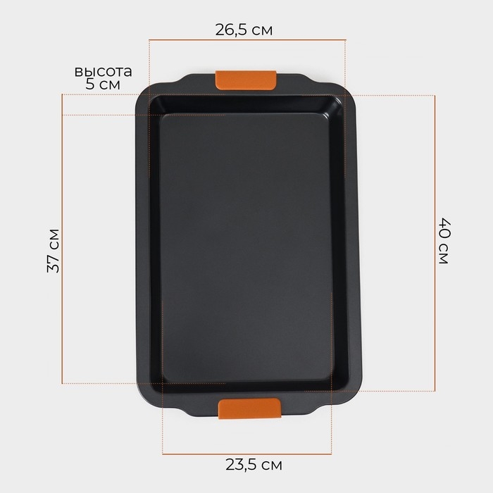 Противень Доляна «Прямоугольник. Жаклин», 37×25×5 см, антипригарное покрытие, цвет чёрный