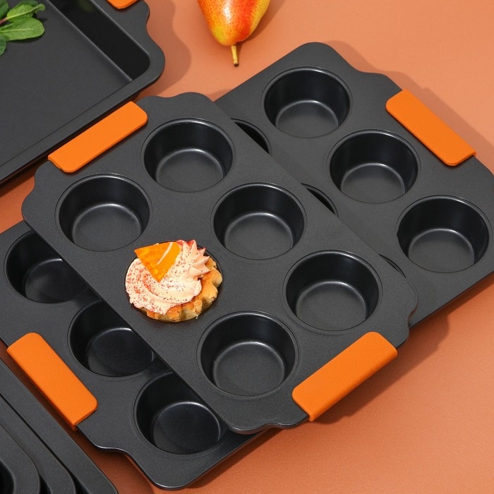 Форма для выпечки изготовлена из высококачественной углеродистой стали с внутренним антипригарным покрытием, что позволяет выпекать без использования масла или жира. Форма имеет круглую форму с 12 круглыми ячейками, что идеально подходит для выпечки небольших кексов, маффинов, печенья и других кондитерских изделий.