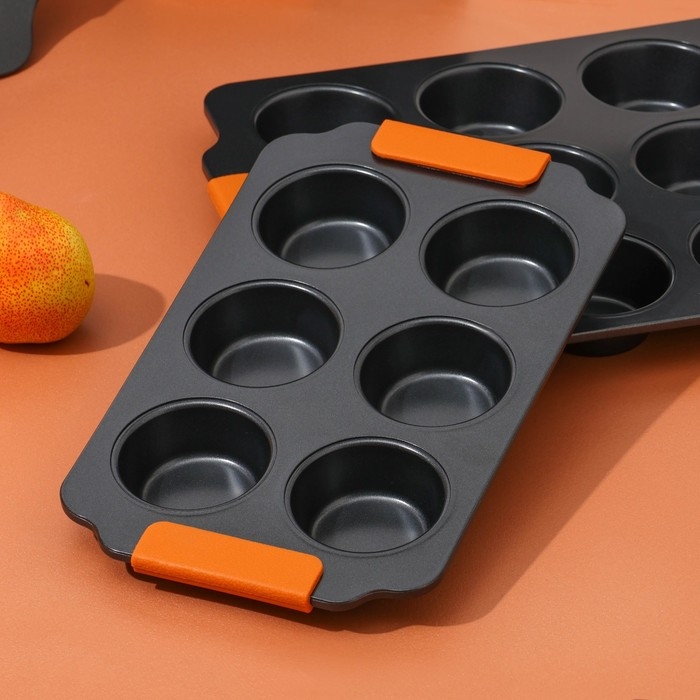 Форма изготовлена из углеродистой стали и имеет внутреннее антипригарное покрытие для легкого извлечения выпечки. Благодаря шести круглым ячейкам вы сможете приготовить несколько порций кексов или маффинов одновременно.