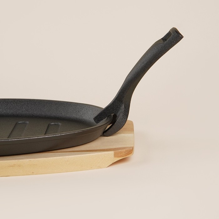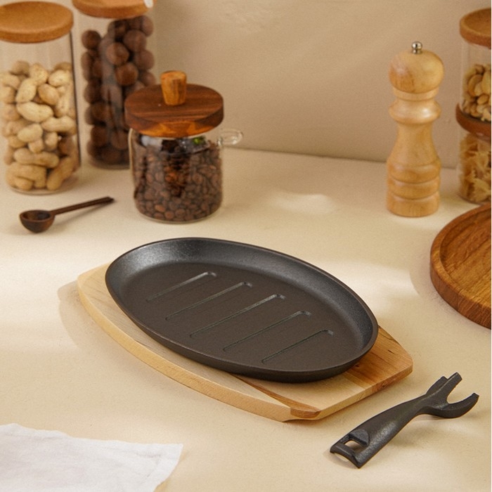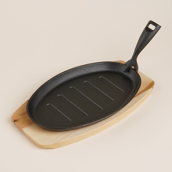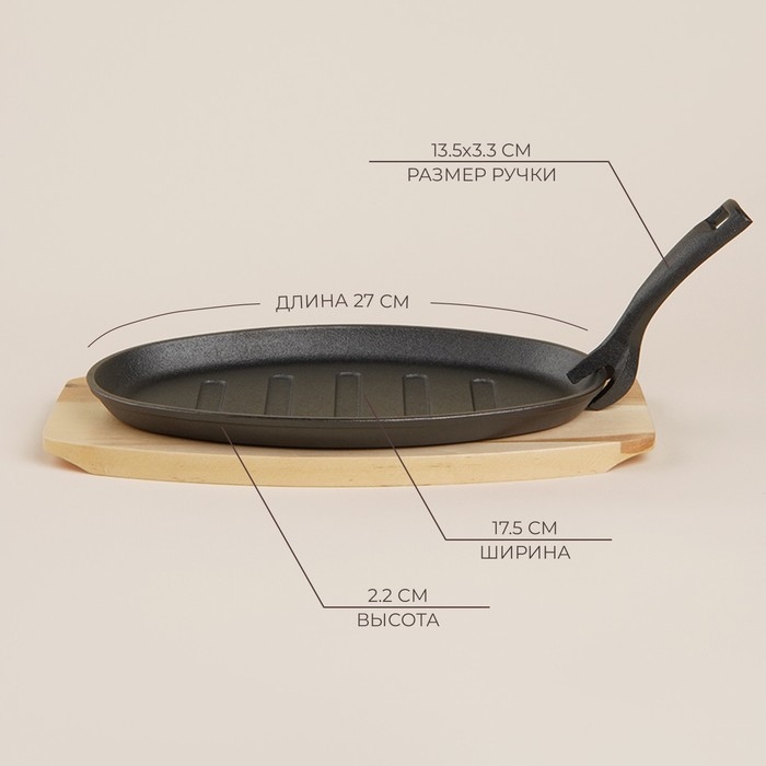 Эта чугунная сковорода на деревянной подставке станет вашей незаменимой спутницей в приготовлении блюд, которые требуют тщательной термической обработки. Ее классический овальный дизайн размером 27x17,5 см и высотой 2,2 см делает её идеальной для подачи горячих деликатесов прямо с огня на стол. Благодаря природным свойствам чугуна, сковорода обеспечивает равномерное распределение тепла и длительное его сохранение, что придаёт блюдам особенный вкус и текстуру.