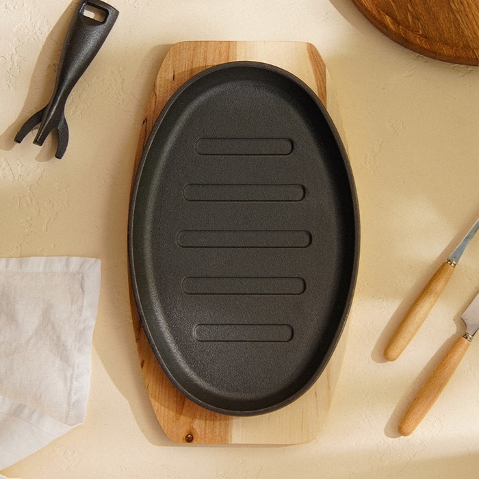 Сковорода чугунная на деревянной подставке SL Home, 27×17,5 см, h=2,2 см, индукция, цвет чёрный
