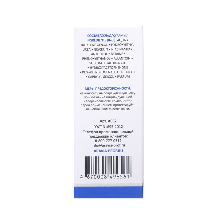 Биоактивный состав: гиалуроновая кислота, витамин В3, мочевина, глицерин, аллантоин, Д-пантенол, бетаин.