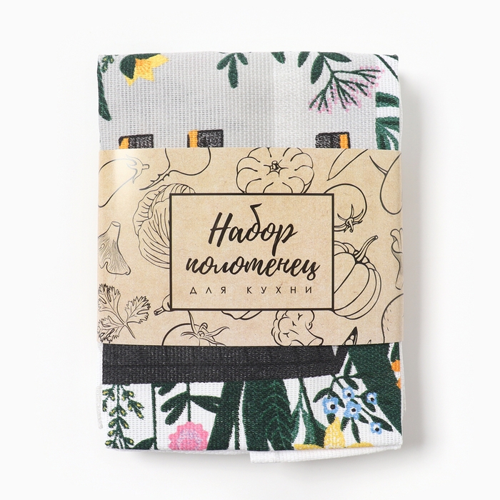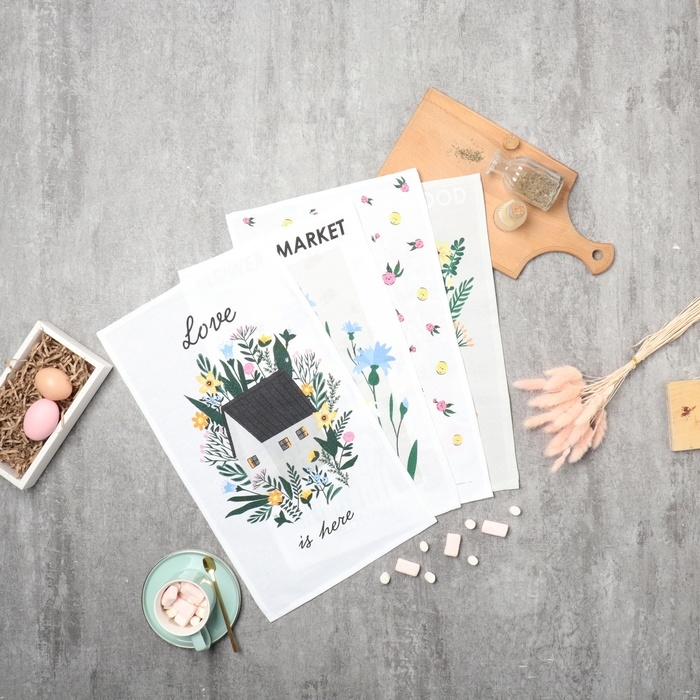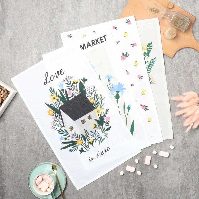 Набор кухонный полотенец Доляна "Love is here" 4 шт, 28х46 см, рогожка, 100% хлопок, 160г/м2