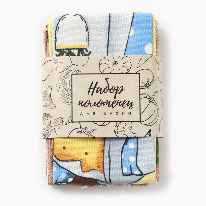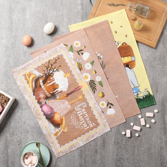 Набор кухонных полотенец Доляна "Светлой пасхи" 4 шт, 28х46 см, рогожка, 100% хлопок, 160г/м2