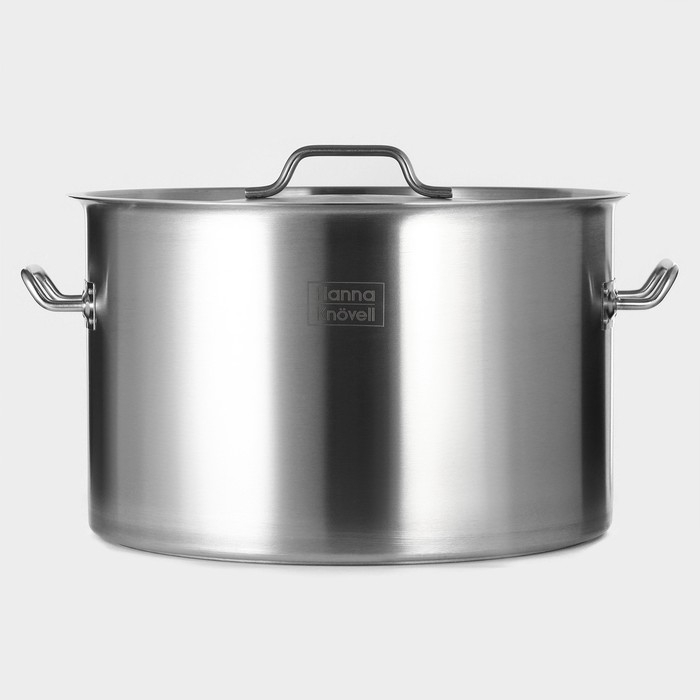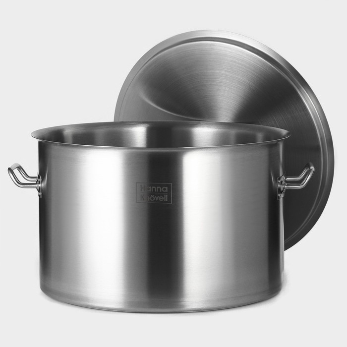 Кастрюля из нержавеющей стали Hanna Knövell, 47 л, d=45 см, h=28 см, толщина 1 мм, дно ТРС, толщина дна 4,6 мм, 201 сталь, металлическая крышка, индукция
