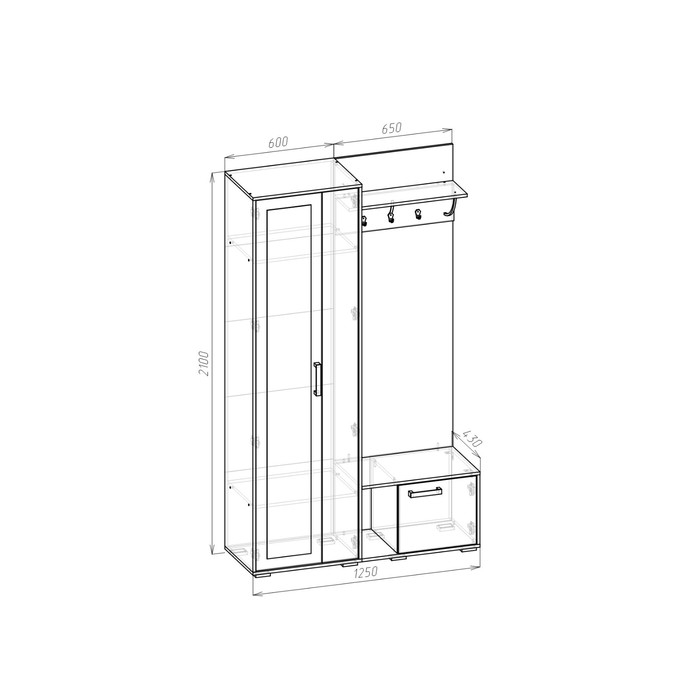 Прихожая Моника-2 с зеркалом 1250х430х2100 Белый