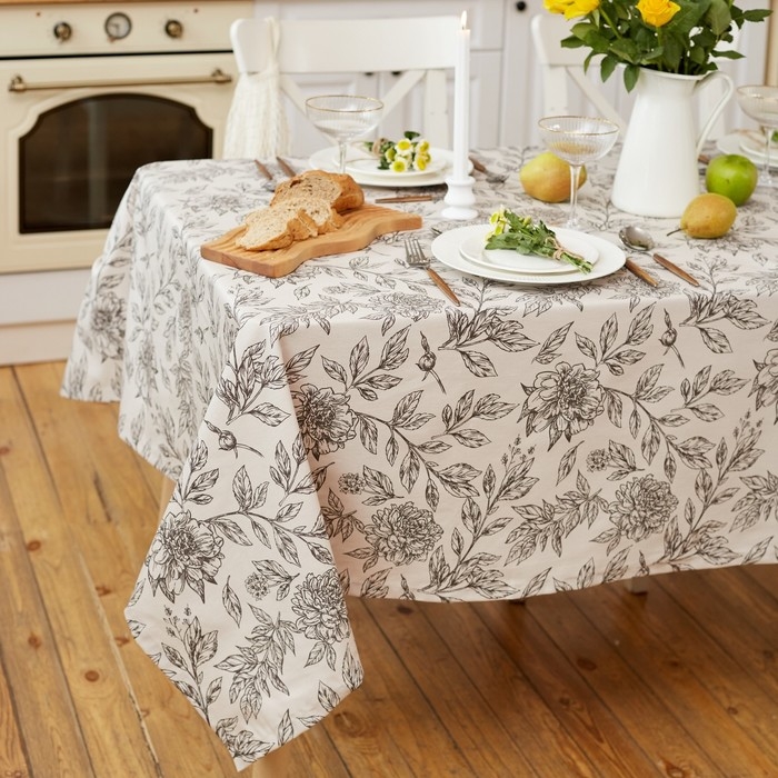 Скатерть Этель "Black flowers" 149х250см, 100% хл, саржа 190 г/м2