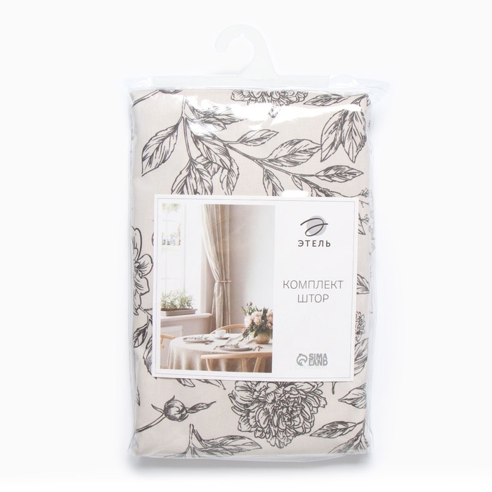 Комплект штор д/кухни с подхватами Этель "Black flowers" 149х180 см - 2 шт