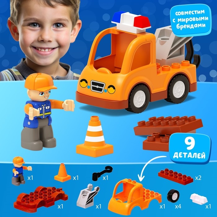 Благодаря конструктору «Дорожные работы» малыш сможет почувствовать себя настоящим строителем. Стать водителем настоящего эвакуатора — всё, что нужно для счастья! Набор подойдёт для детей и малышей от 3 лет.