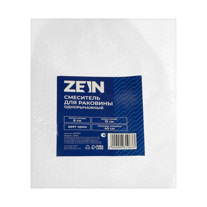 Смеситель для раковины ZEIN Z3654, однорычажный, высота излива 8 см, ABS-пластик, хром