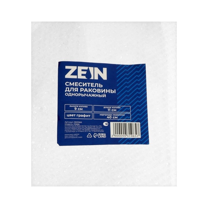 Смеситель для раковины ZEIN Z3656, однорычажный, высота излива 9 см, ABS-пластик, графит