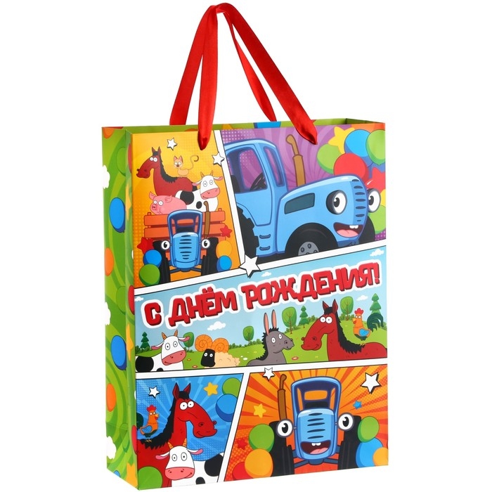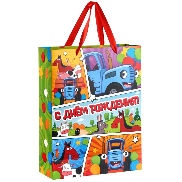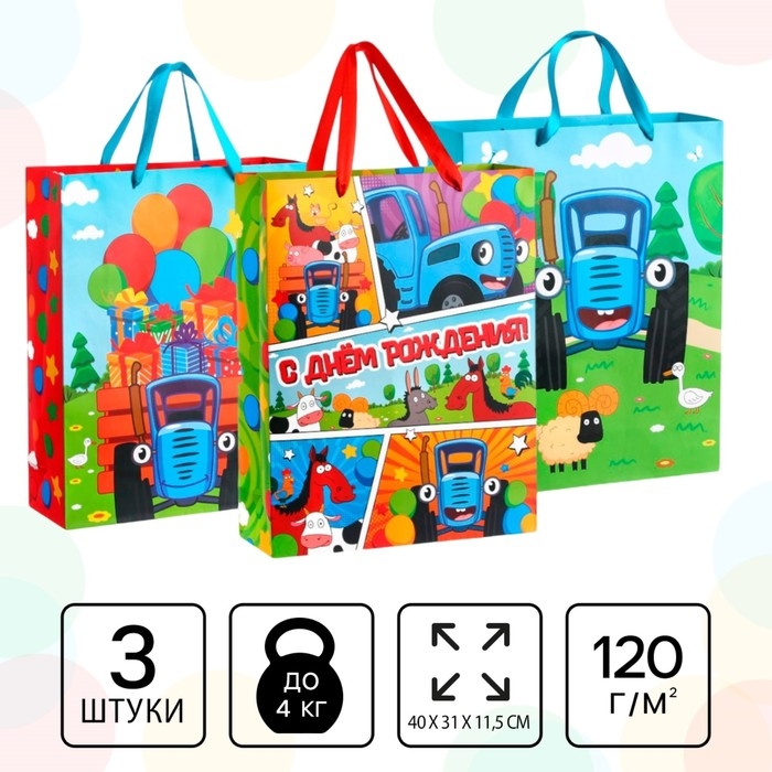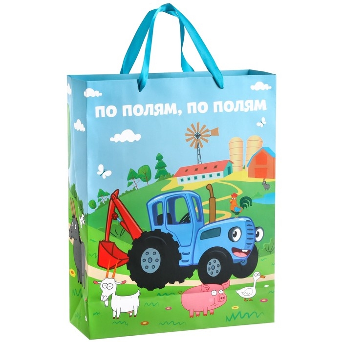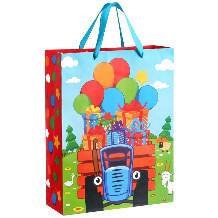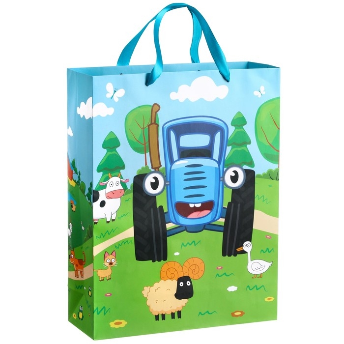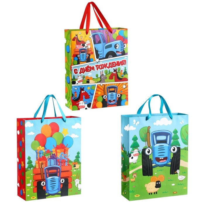 Набор подарочных пакетов, 31х40х11.5 см, Синий трактор