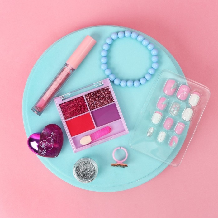 Набор детской косметики «Волшебство в твоих руках», тени, блеск для губ, накладные ногти, глиттер, кольцо, браслет