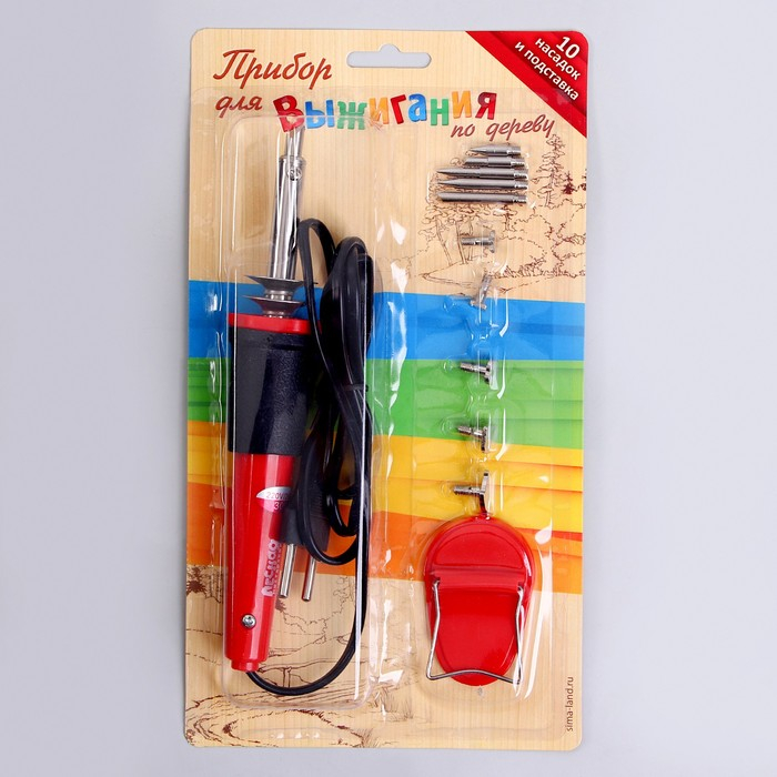Выжигательный аппарат по дереву, набор: 10 насадок, подставка
