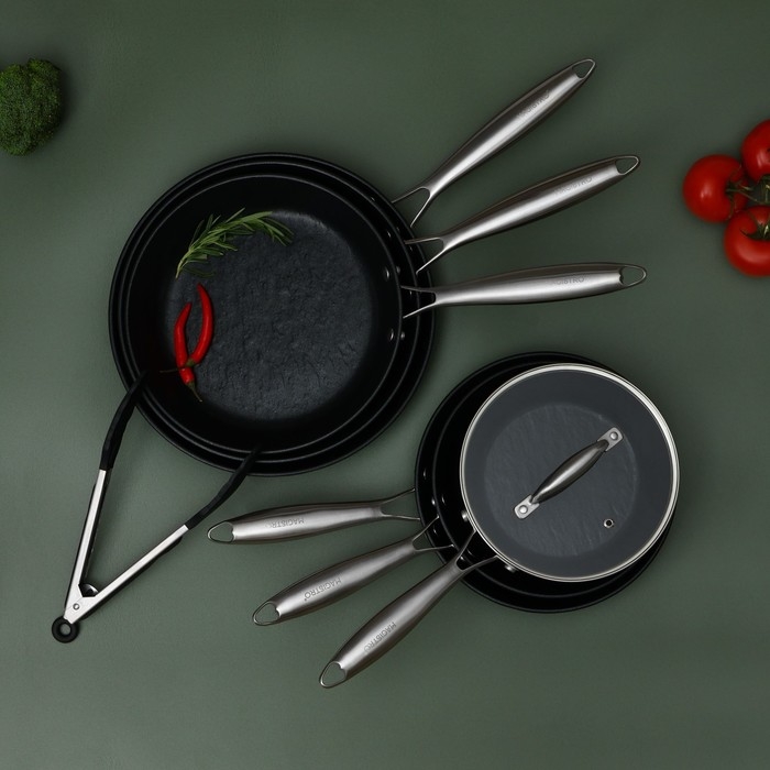 - Антипригарное покрытие Greblone C3: предотвращает пригорание пищи и упрощает процесс чистки сковороды.