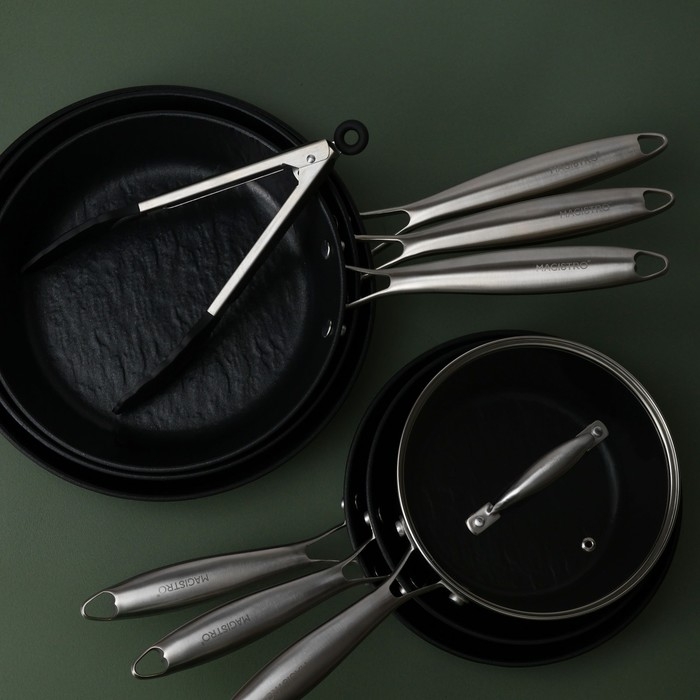 Сковорода Magistro Rock Stone, d=24 см, h=4,5 см, антипригарное покрытие, индукция, цвет чёрный