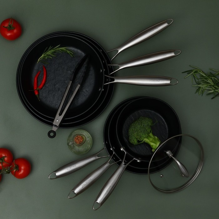 Сковорода Magistro Rock Stone изготовлена из прочного алюминия и имеет антипригарное покрытие Greblone C3.Она подходит для использования на всех типах плит, включая индукционные. Стильный дизайн в стиле камня прекрасно дополнит интерьер любой кухни.