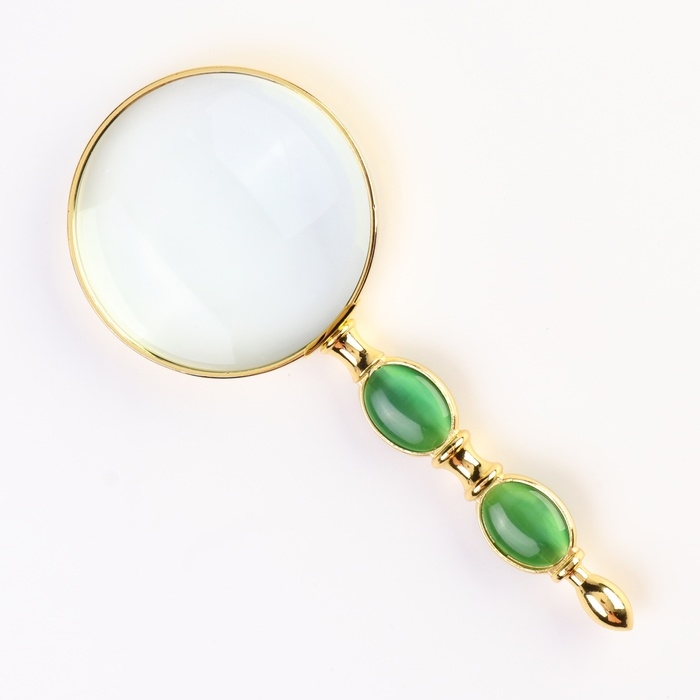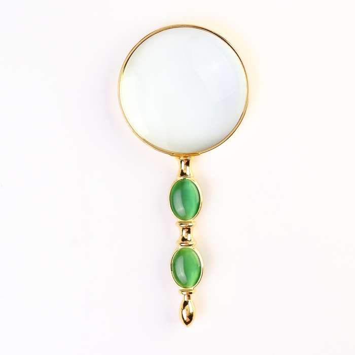 Лупа классическая золотая с камнем, кратность 2, линза 65мм