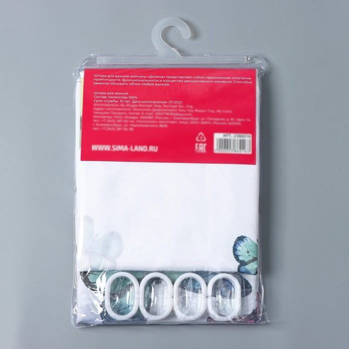 Штора для ванны Доляна «Бабочки», 180×180 см