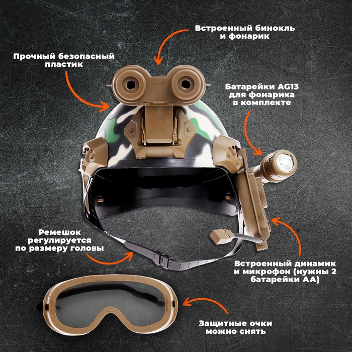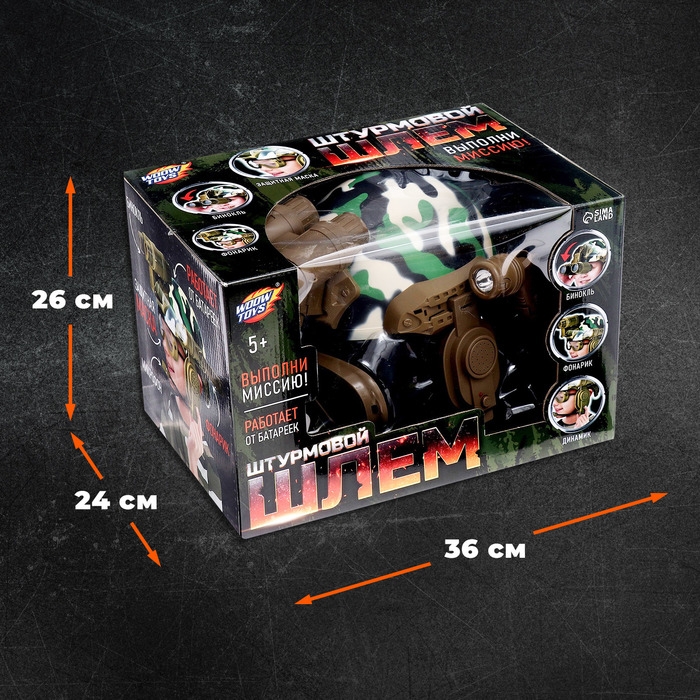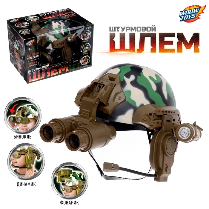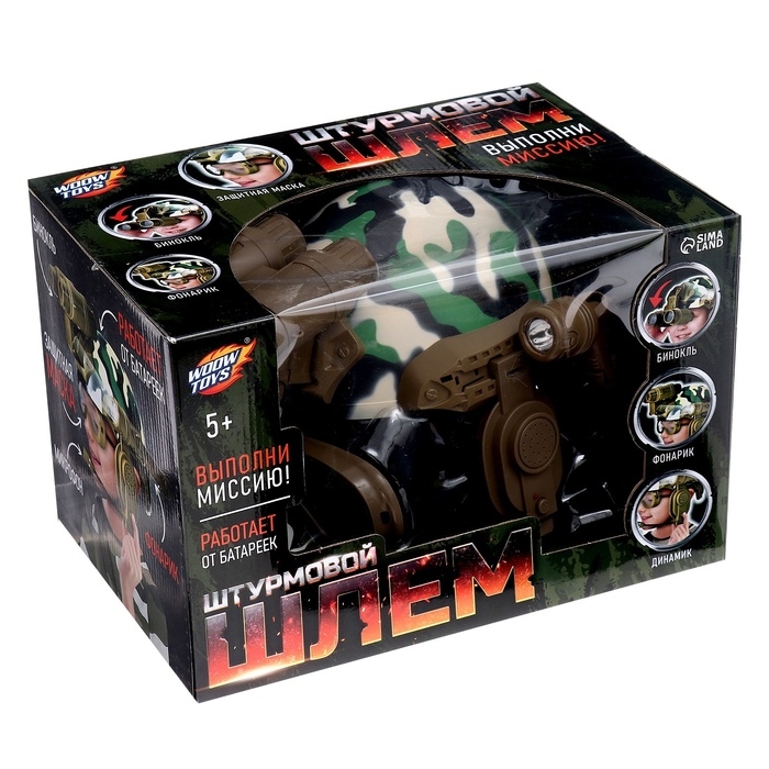 Малыш хочет почувствовать себя настоящим солдатом? Тогда ему нужен шлем «Штурмовик». Игрушка оснащена биноклем для слежения за врагами, динамиком с микрофоном для передачи информации друзьям и даже фонариком. Многофункциональный шлем поможет ребёнку справиться даже с самой сложной миссией!