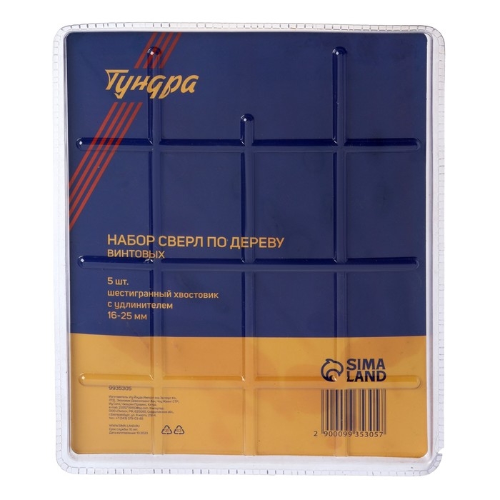 Набор сверл по дереву винтовых ТУНДРА, шестигранный хвост., с удлинителем, 16-25 мм, 5 шт.