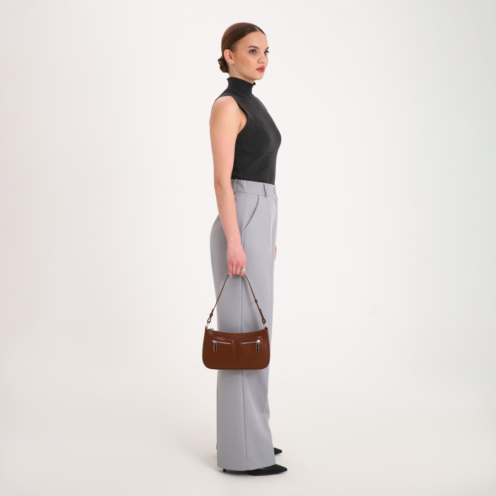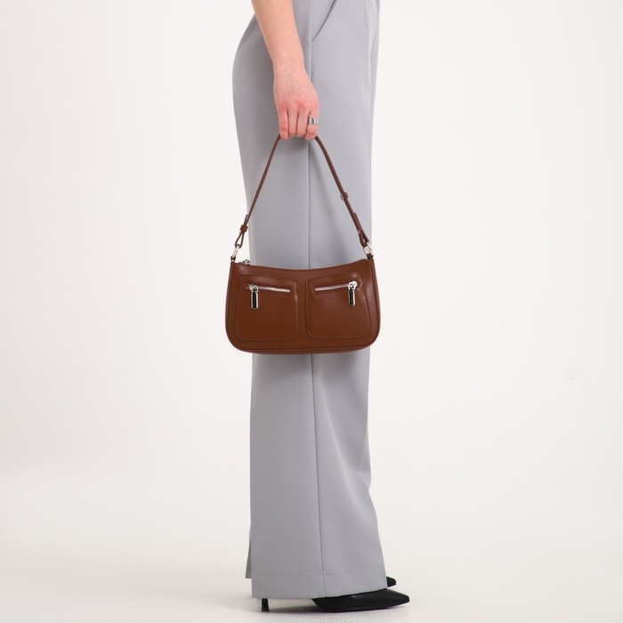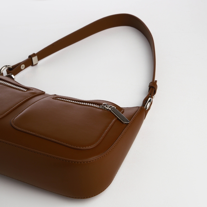 Эта стильная модель в коричневом цвете выполнена из качественной искусственной кожи, что гарантирует долговечность и лёгкость в уходе. Идеальный выбор для тех, кто ценит функциональность и изысканность в одном аксессуаре.