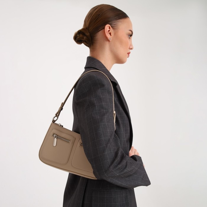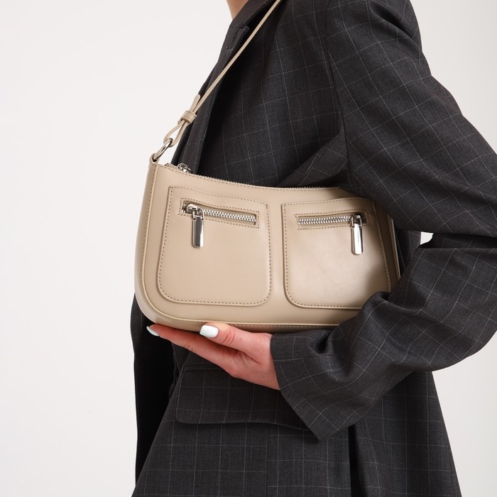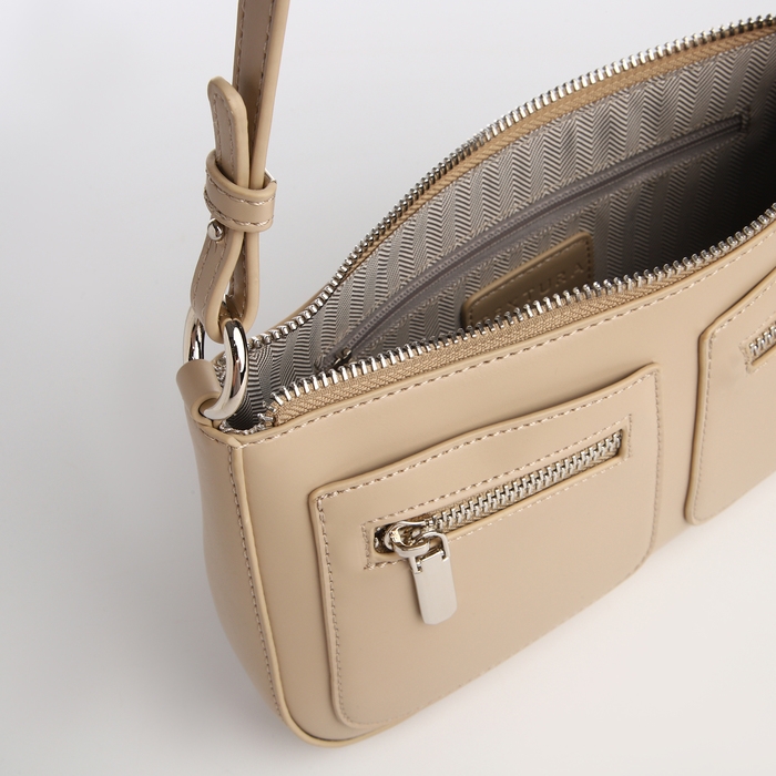 Сумка-багет на молнии, цвет бежевый