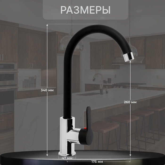 Смеситель для кухни ZEIN Z3353, однорычажный, картридж керамика 35 мм, черный/хром