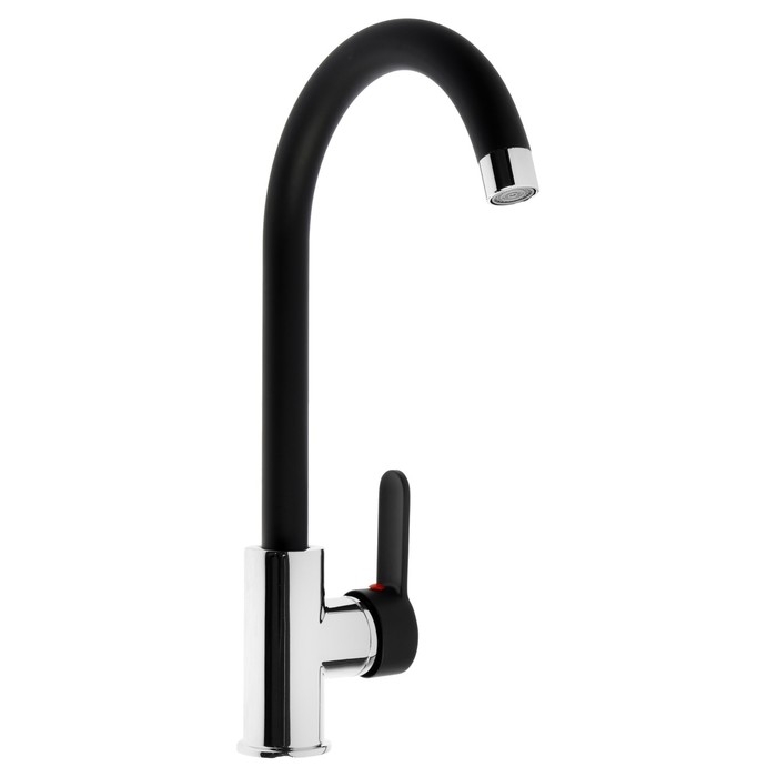 Cмеситель для кухни Accoona A9890N, однорычажный, силиконовый излив, красный/хром