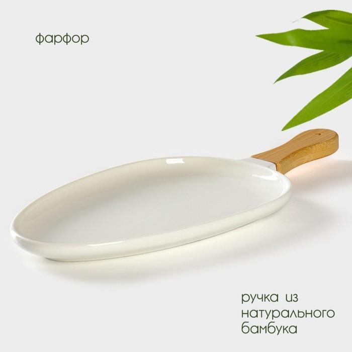 Блюдо фарфоровое для подачи с бамбуковой ручкой BellaTenero, 36,5×16×2 см, цвет белый