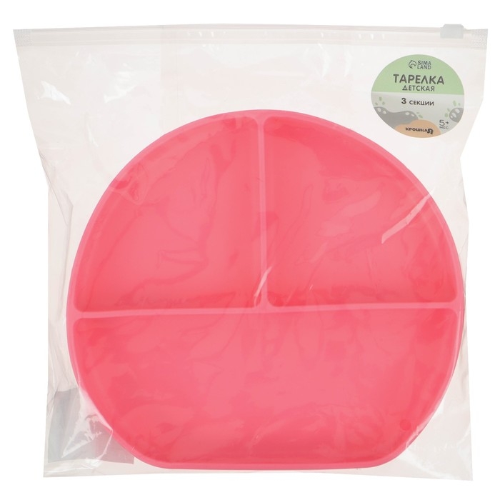 Тарелка детская 3 секции на присоске, Крошка Я, 20,5х19х3, розовый