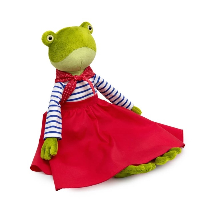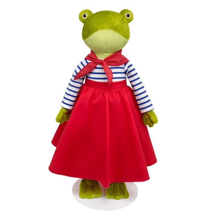 Мягкая игрушка «Джейн Кваковская» — прелестная лягушка в морском комплекте. Обворожительная модница обожает ярко и стильно одеваться. С таким подарком малышка представит себя в роли дизайнера и обретёт очаровательную подружку.