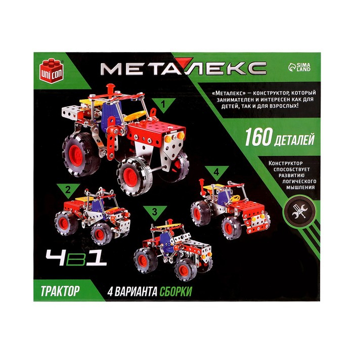 Конструктор металлический «Трактор», 4 варианта сборки, 160 деталей