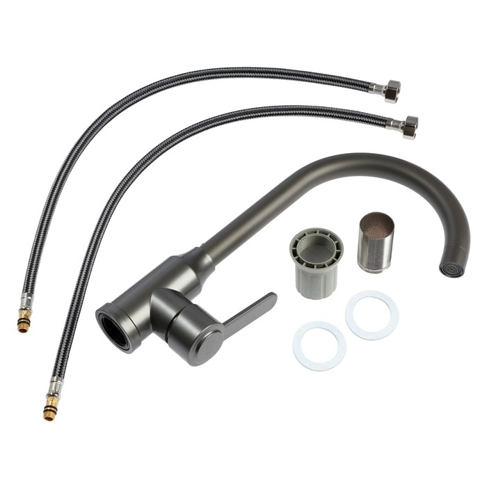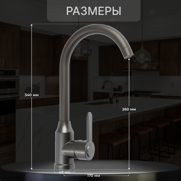 Смеситель для кухни ZEIN Z3700, однорычажный, поворотный излив высотой 26 см, графит