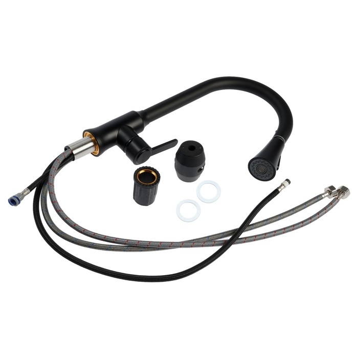 Смеситель для кухни ZEIN Z3708, вытяжной излив, аэратор 2 режима, черный