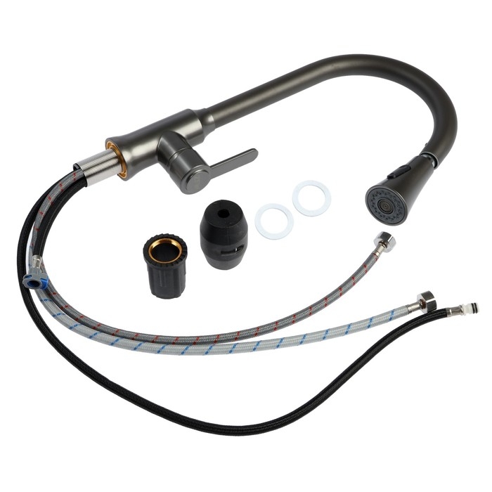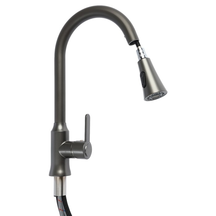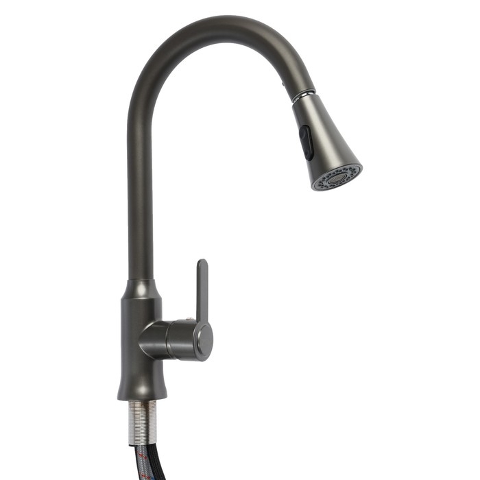 Смеситель для кухни ZEIN Z3709, вытяжной излив, аэратор 2 режима, ABS-пластик, графит