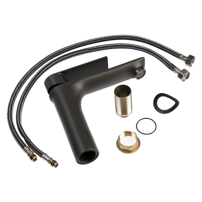 Смеситель для раковины ZEIN Z3876, однорычажный, высота излива 14 см, латунь, графит