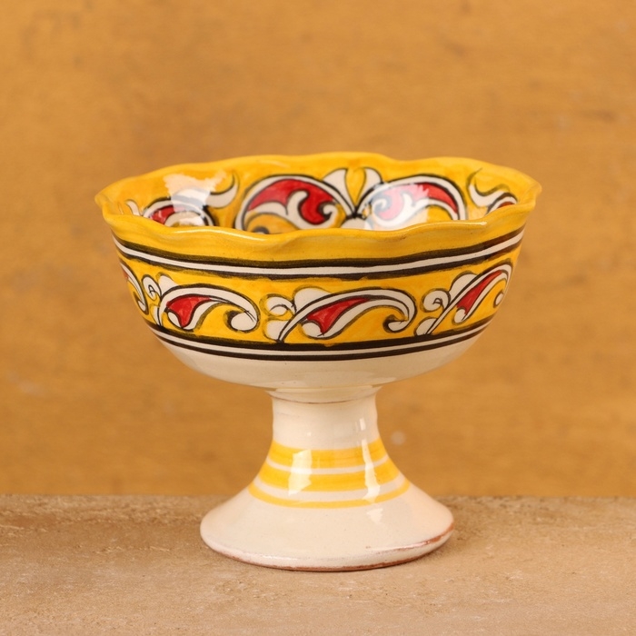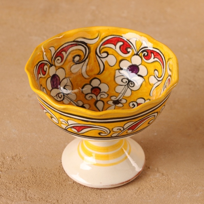 Конфетница Риштанская Керамика "Цветы", желтая 12 см,