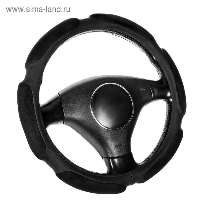 Оплетка на руль TORSO, анатомическая, велюр 6 подушек, размер 38 см, черный