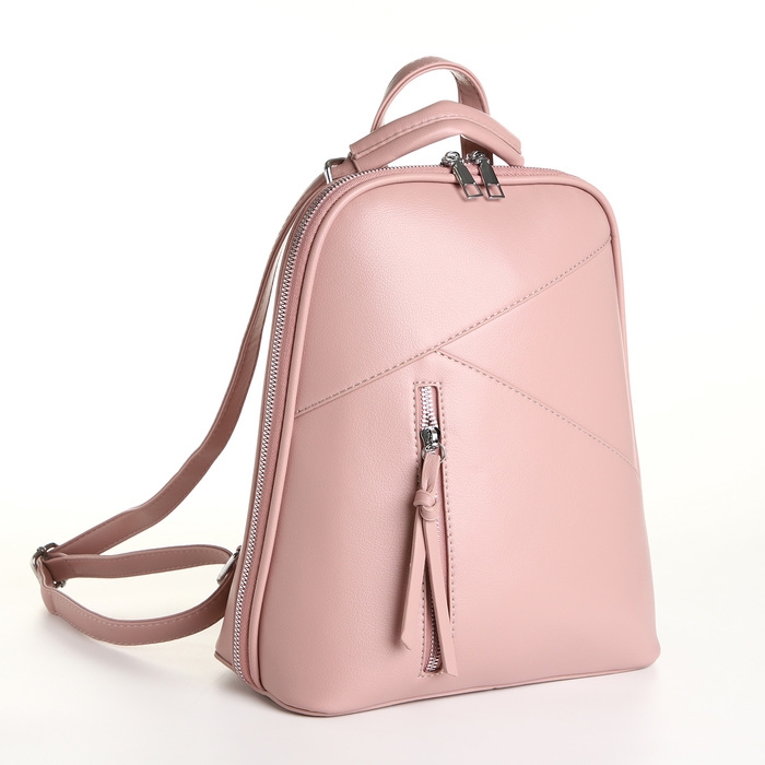 Рюкзак городской из искусственной кожи на молнии, цвет розовый