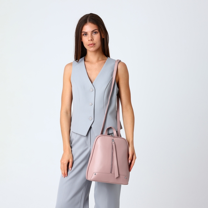 Рюкзак городской из искусственной кожи на молнии, цвет розовый