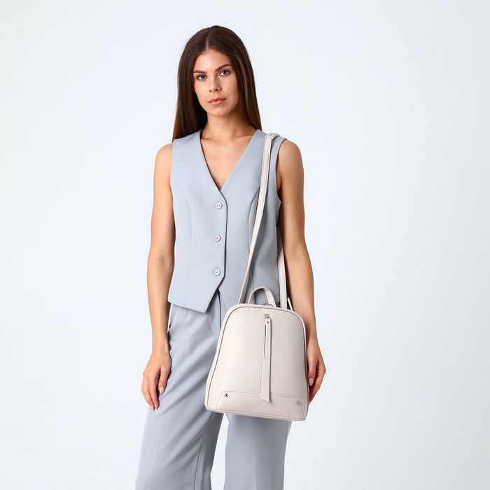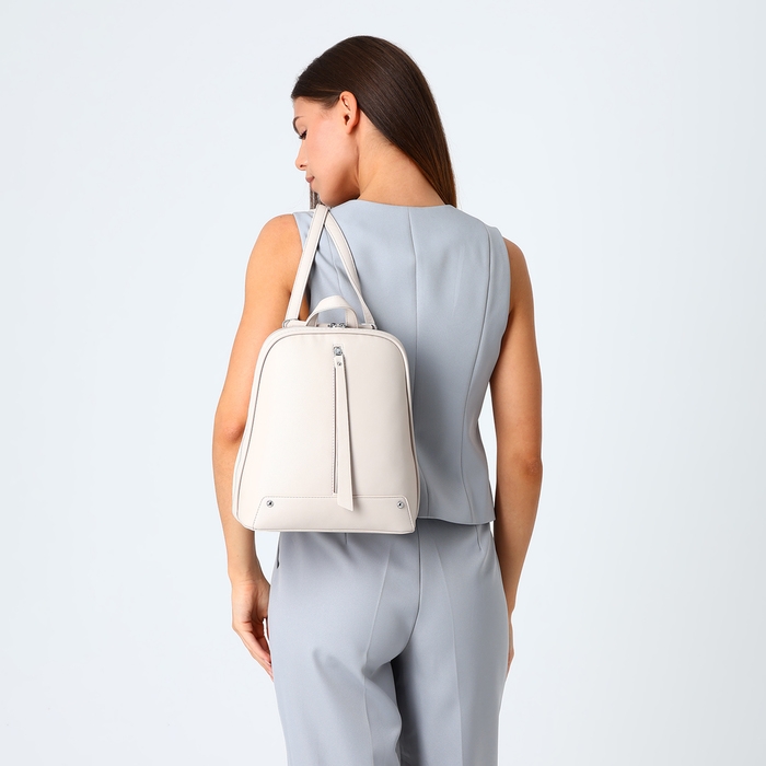 Рюкзак городской из искусственной кожи на молнии, цвет бежевый