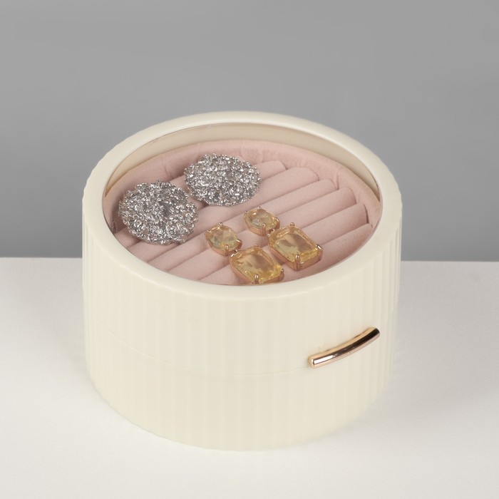 Подставка под кольца «Шкатулка портативная», круг, 7 полос, 9×9×5,5 см, цвет белый