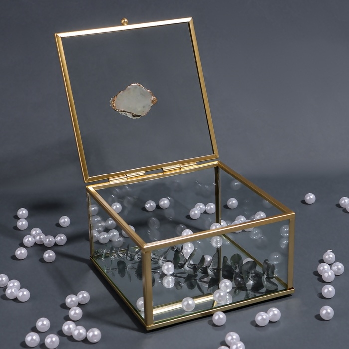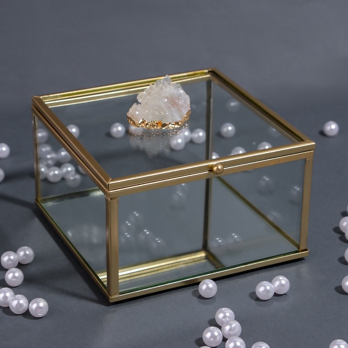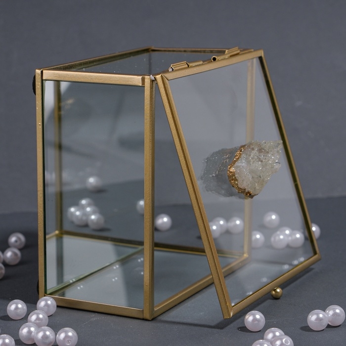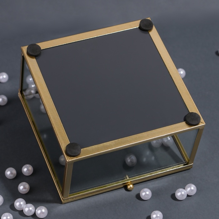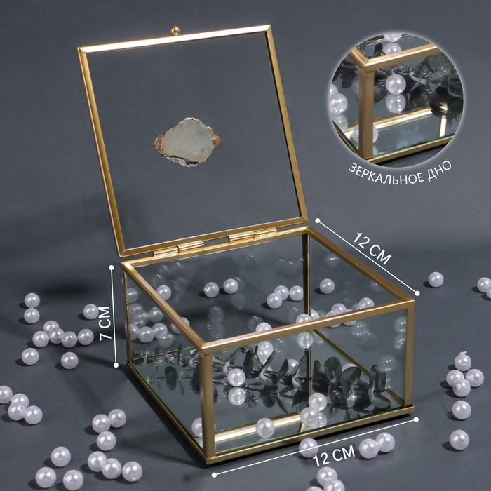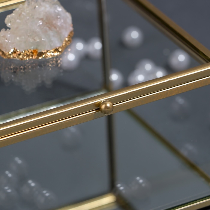 Органайзер для хранения «MOUNTAINS», с крышкой, стеклянный, с зеркальным дном, 1 секция, 12 × 12 × 7 см, цвет прозрачный/медный