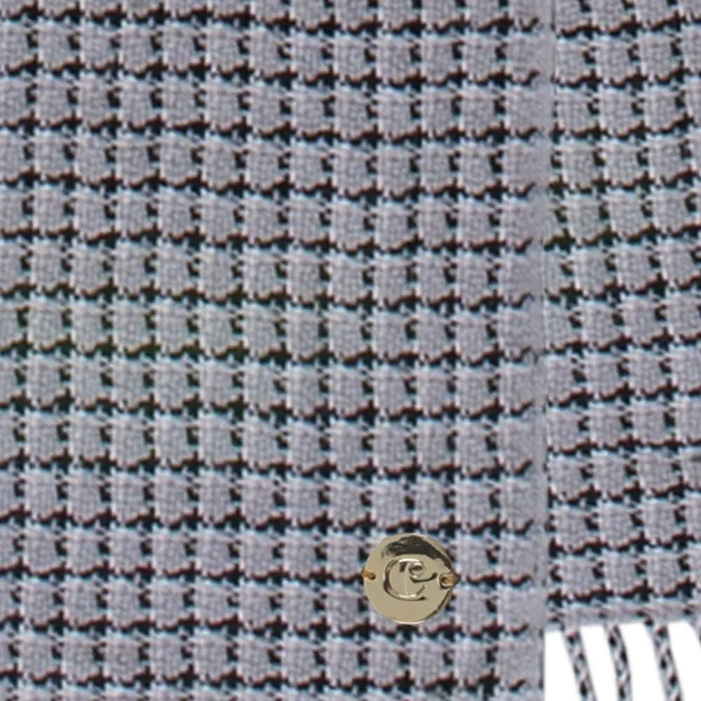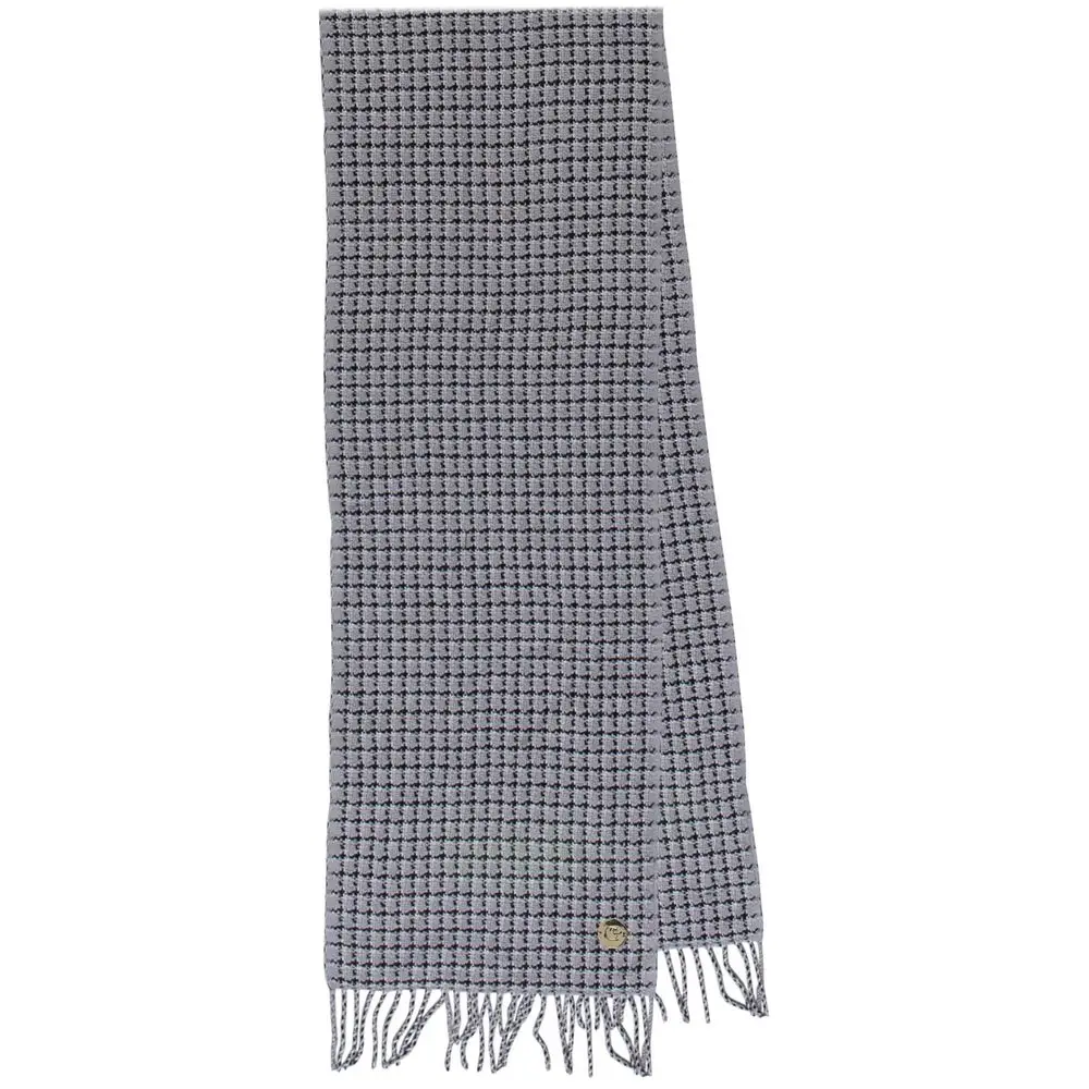 Шарф из высококачественной шерсти с бахромой и узором «гусиная лапка» украшен золотистой эмблемой бренда Cacharel.Поставляется в подарочной упаковке.