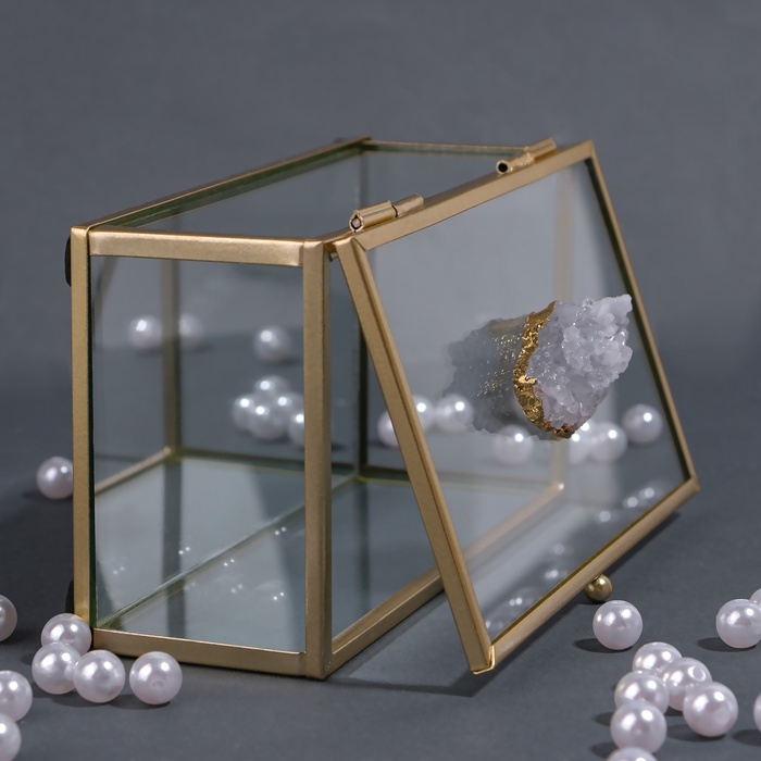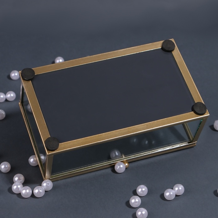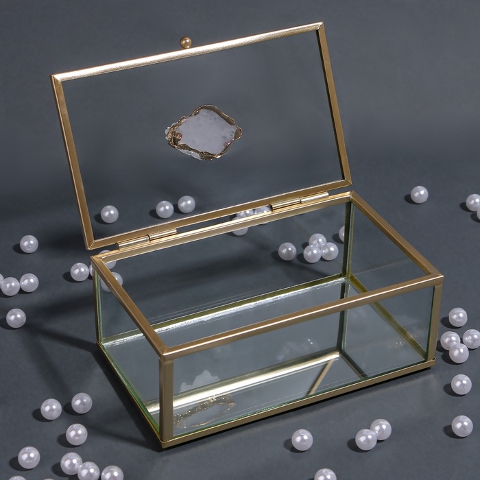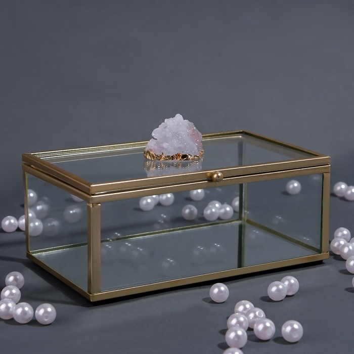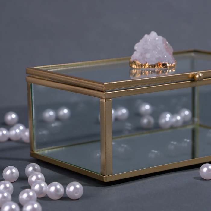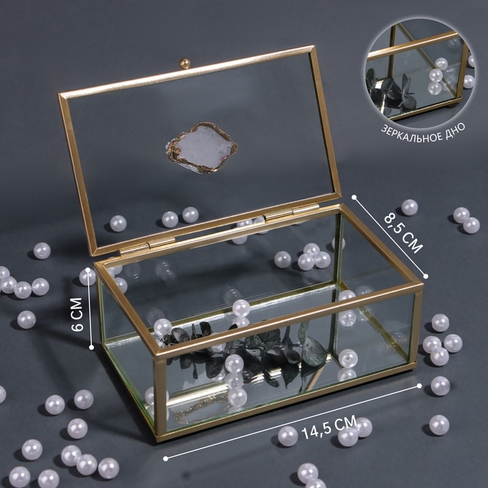 Органайзер для хранения «MOUNTAINS», с крышкой, стеклянный, с зеркальным дном, 1 секция, 14,5 × 8,5 × 6 см, цвет прозрачный/медный