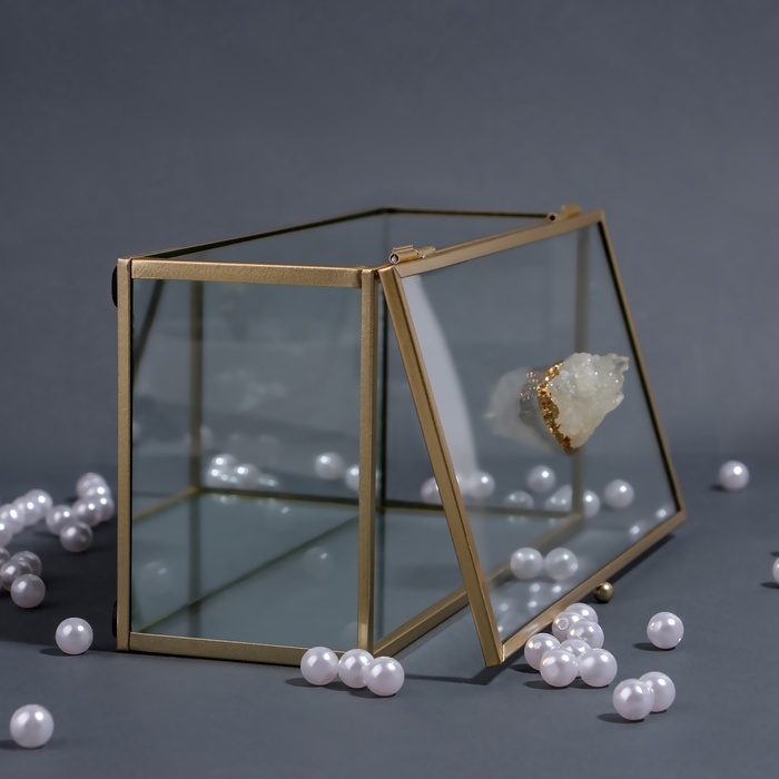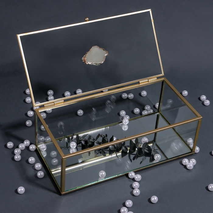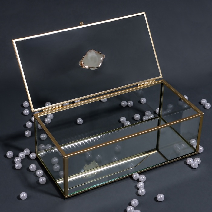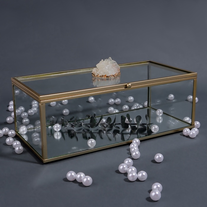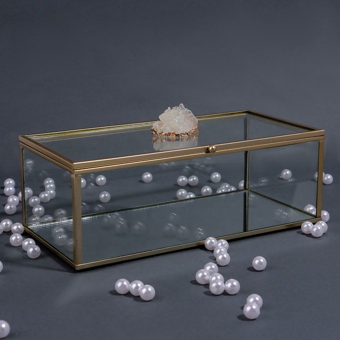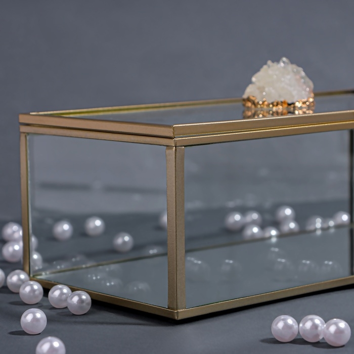 Органайзер для хранения «MOUNTAINS», с крышкой, стеклянный, с зеркальным дном, 1 секция, 21,5 × 10,5 × 7,5 см, цвет прозрачный/медный