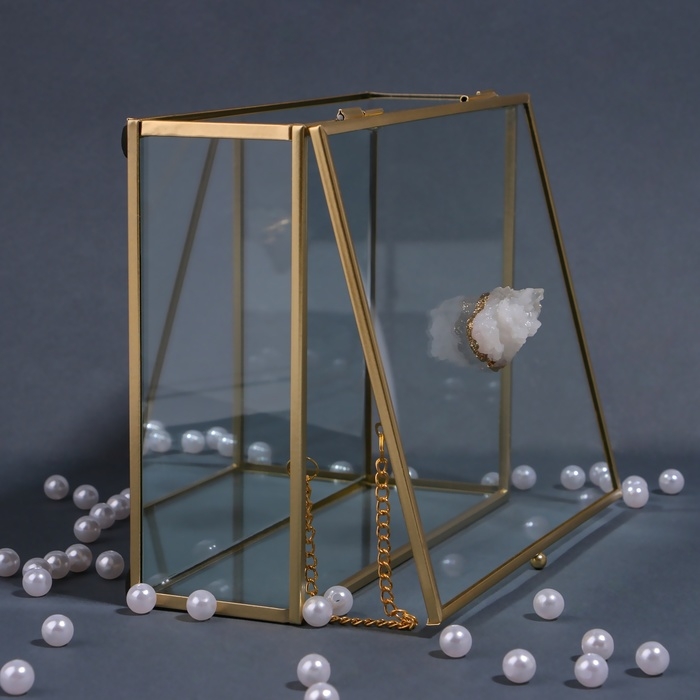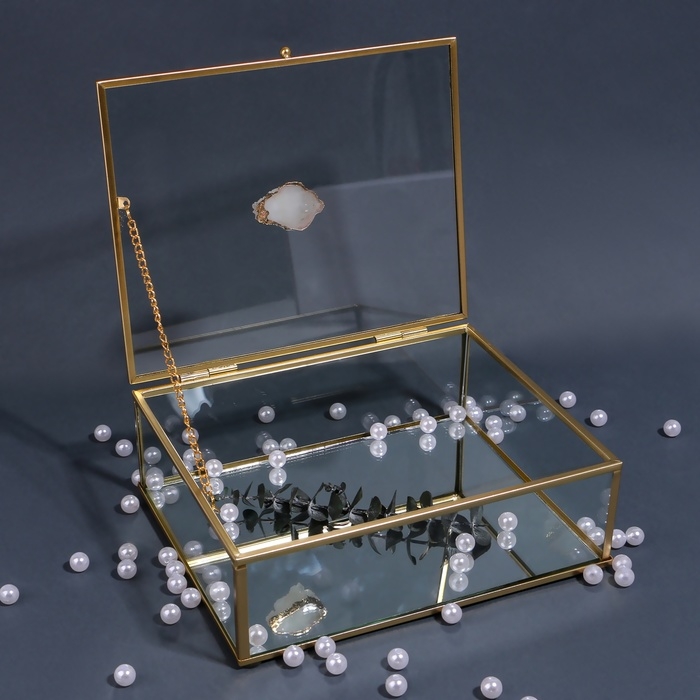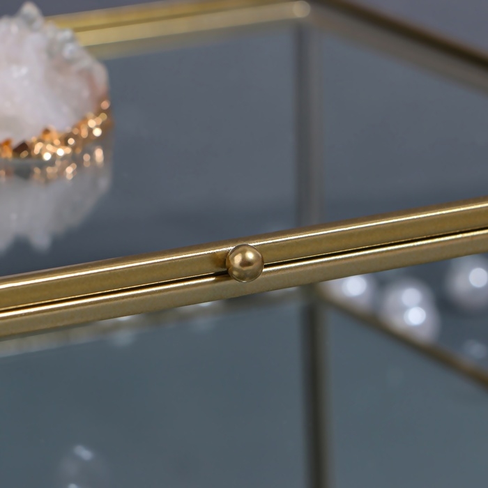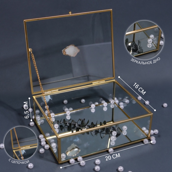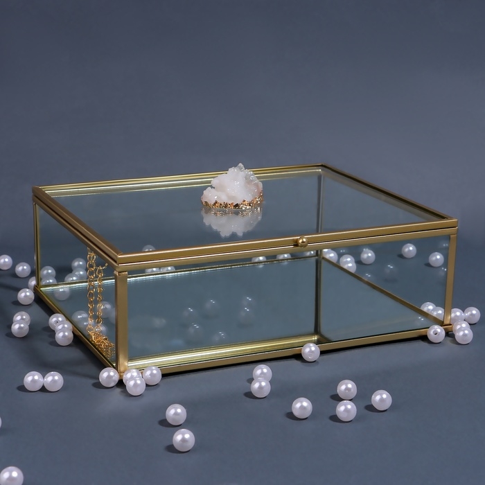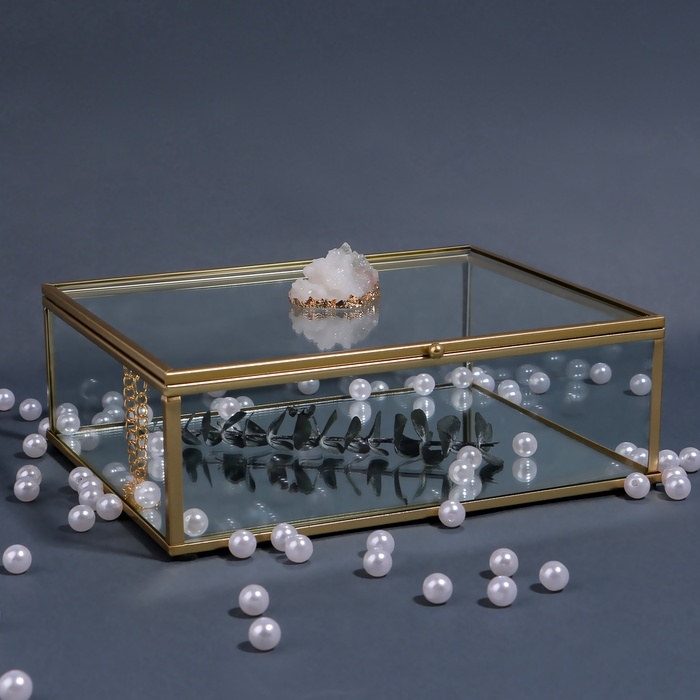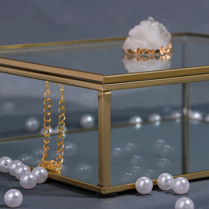 Органайзер для хранения «MOUNTAINS», с крышкой, стеклянный, с зеркальным дном, 1 секция, 20 × 16 × 6,5 см, цвет прозрачный/медный